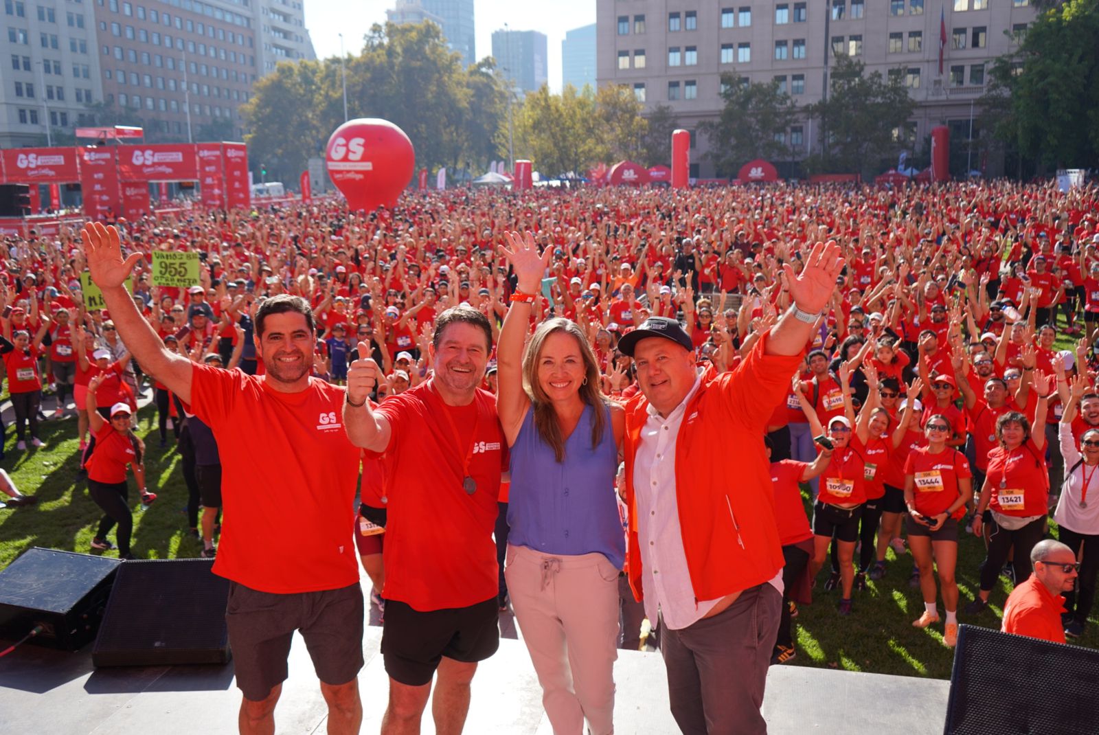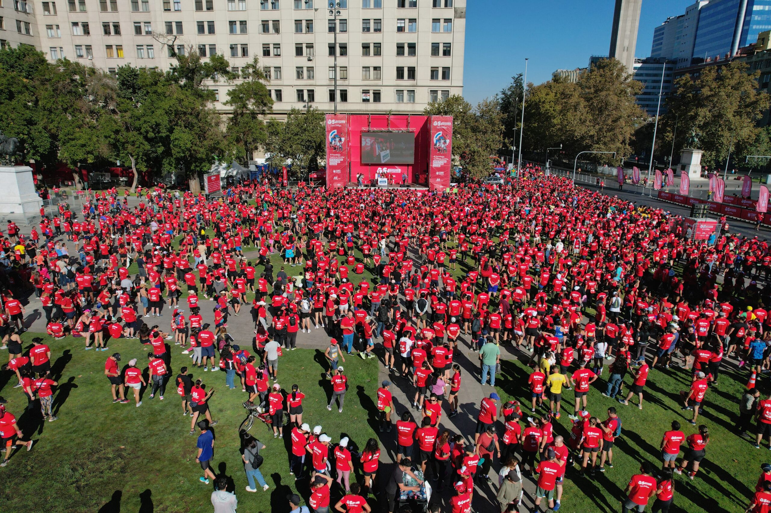 Santiago, 07 de abril de 2024. Una masiva y colorida fiesta del deporte fue lo que se vivió la mañana de este domingo en la Plaza Bulnes, pleno sector de la Alameda, lugar donde se realizó la segunda versión de la corrida ‘Gana Santiago’ para celebrar el día internacional del deporte y la actividad física.