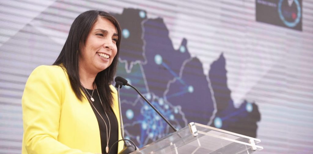 Santiago, 18 de octubre de 2019.– A bordo de un auto eléctrico llegó este viernes la Intendenta de la Región Metropolitana, Karla Rubilar, para encabezar junto al presidente del Consejo Regional Metropolitano, Felipe Berríos; y el gerente general de Copec, Arturo Natho; la ceremonia de inauguración de la nueva Red de Carga Pública para Vehículos Eléctricos de la Región Metropolitana, la más grande de su tipo en Sudamérica.