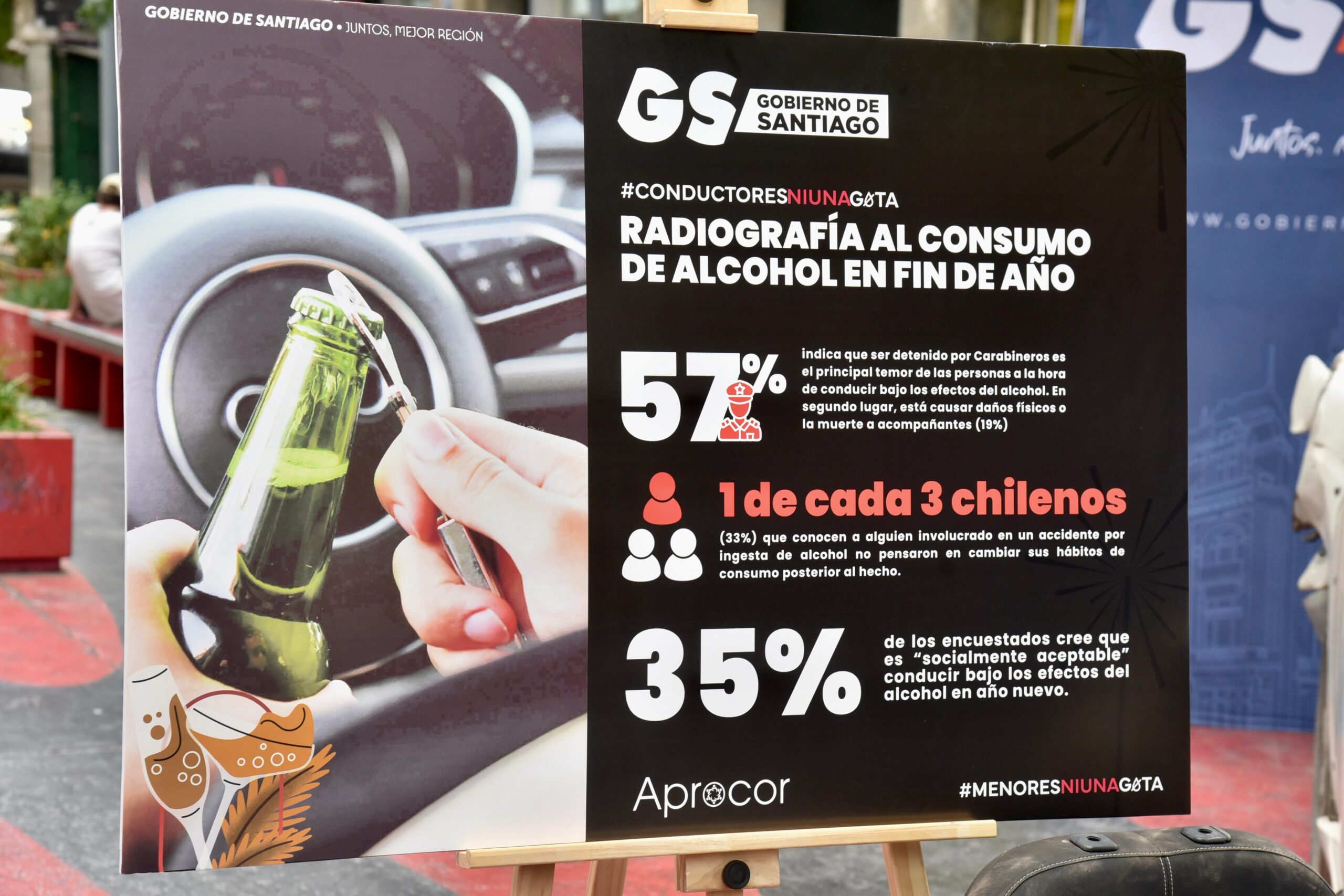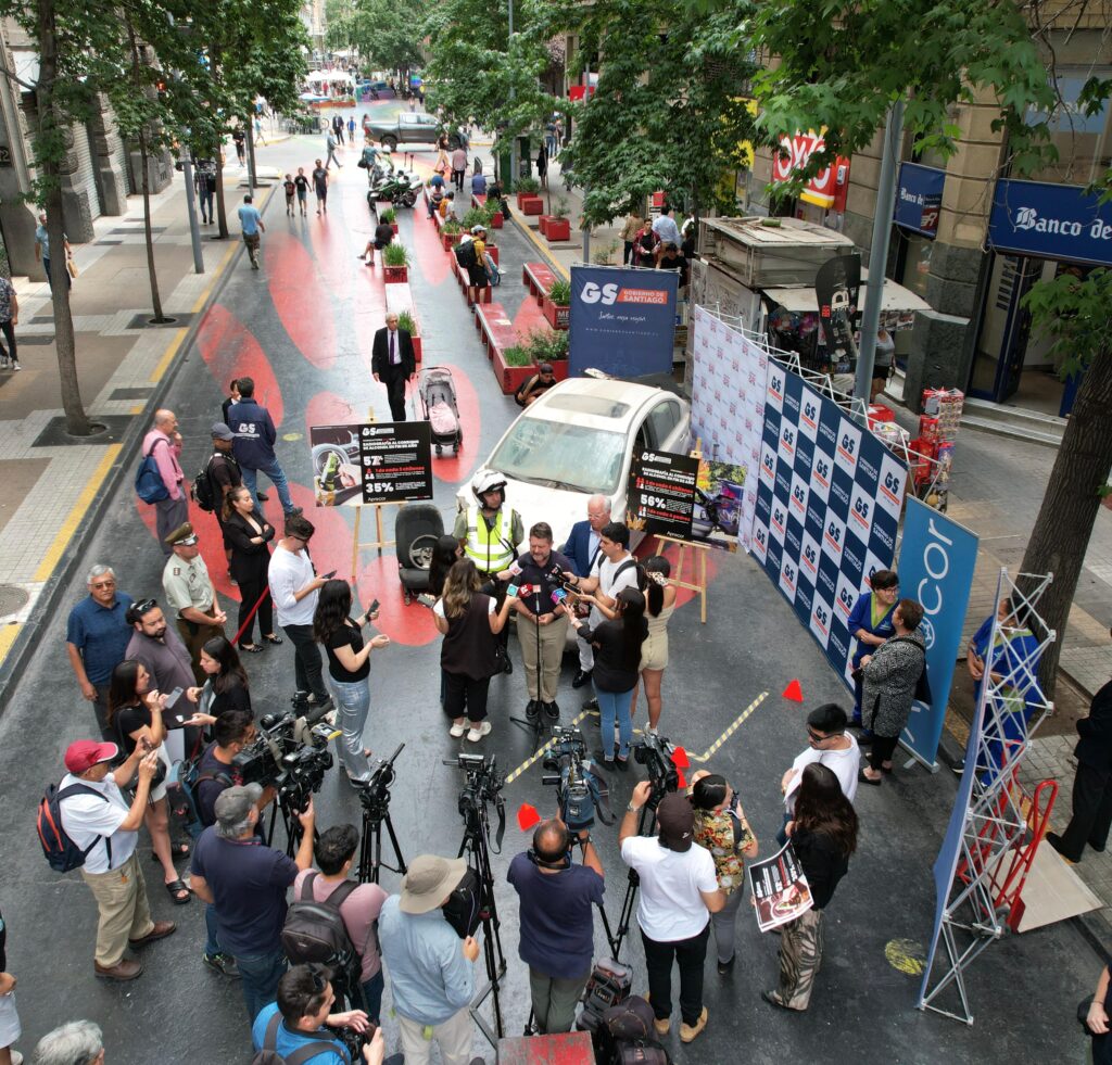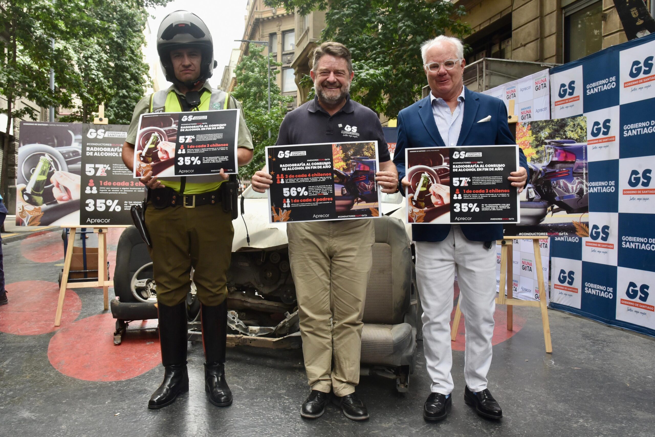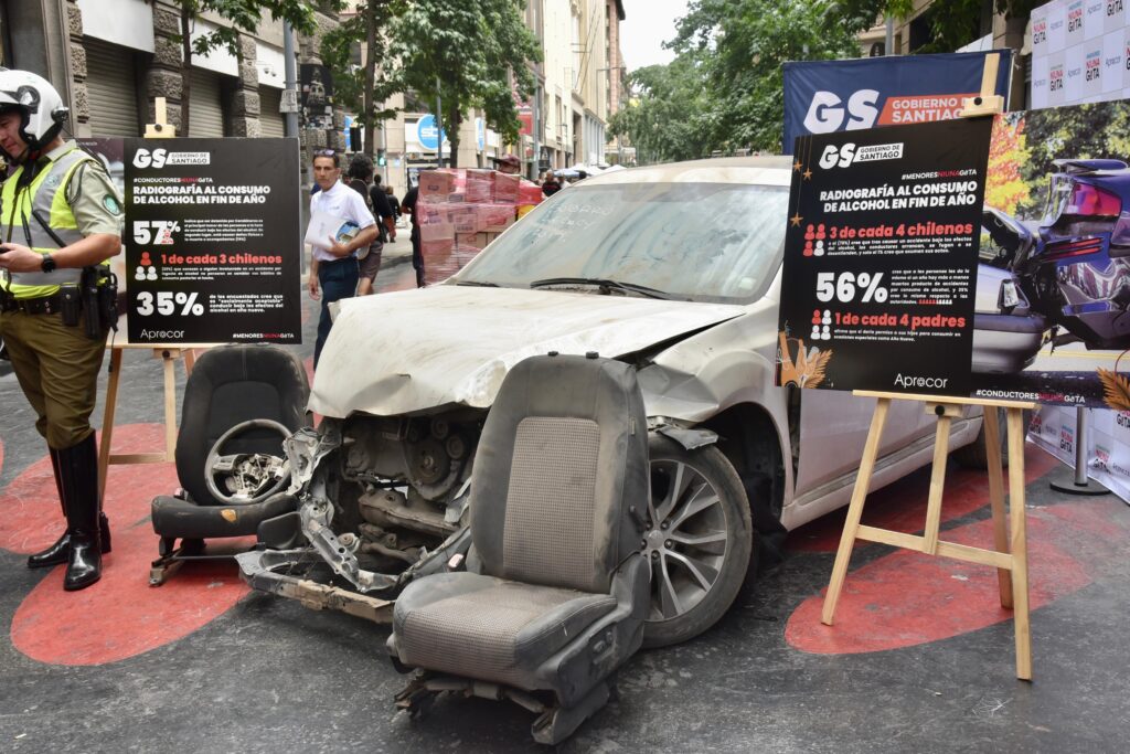 Con la intervención de un auto chocado por consumo irresponsable de bebidas con alcohol, instalado en Paseo Bandera, los hallazgos fueron presentados por el presidente de Aprocor, Juan Pablo Solís de Ovando en compañía del Gobernador de Santiago, Claudio Orrego, y Carabineros de Chile.