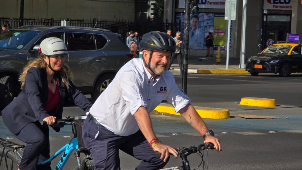 Santiago, 05 de marzo de 2026.- El Presidente de la República, Gabriel Boric, junto al gobernador de la Región Metropolitana, Claudio Orrego, y diversas autoridades de gobierno y municipales, inauguraron parte de la ciclovía de la Alameda y la nueva Plaza Baquedano, una de las principales intervenciones del proyecto Nueva Alameda, iniciativa que está recuperando el principal eje urbano de la capital, mediante mejoras en infraestructura, espacio público y movilidad sustentable.