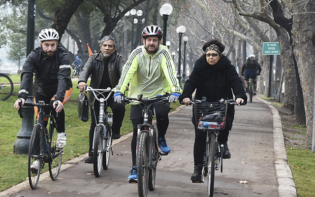 La alcaldesa de Providencia, Josefa Errázuriz, junto al director del Servicio de Vivienda y Urbanización, Alberto Pizarro, y el intendente Metropolitano, Claudio Orrego, inauguraron la reconstrucción del nuevo tramo del cicloparque más grande del país, Mapocho 42K (M42K): Parque Uruguay.
