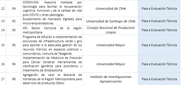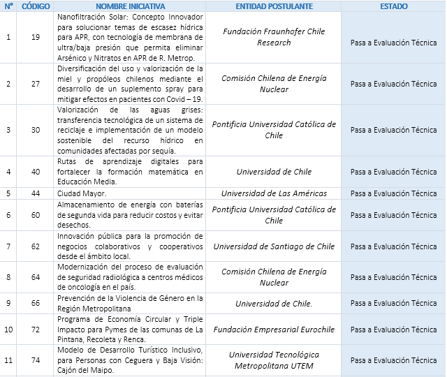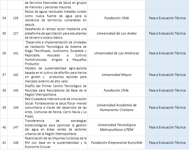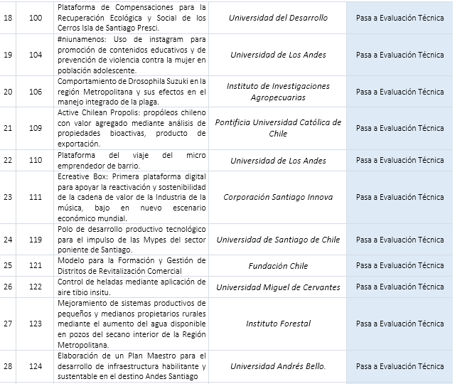 Santiago, 23 de noviembre de 2021.- El Gobierno Regional Metropolitano de Santiago publica los proyectos que, habiendo superado la Etapa de Evaluación Formal, pasan a la Etapa de Evaluación Técnica.
