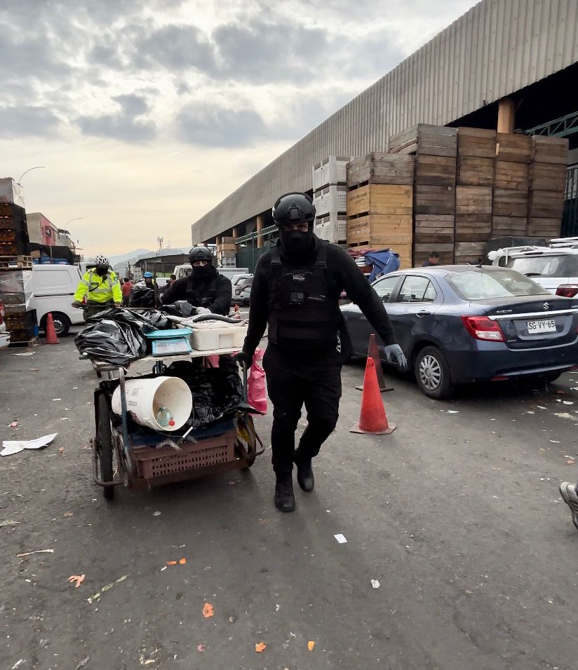 Desde las 07:00 de este jueves, los equipos de Carabineros se desplegaron por las inmediaciones de la Vega Central con el fin de fiscalizar la certificación de los productos que eran comercializados junto al Servicio de Impuestos Internos y controlar el comercio irregular de las calles con los equipos del seremi de Salud.