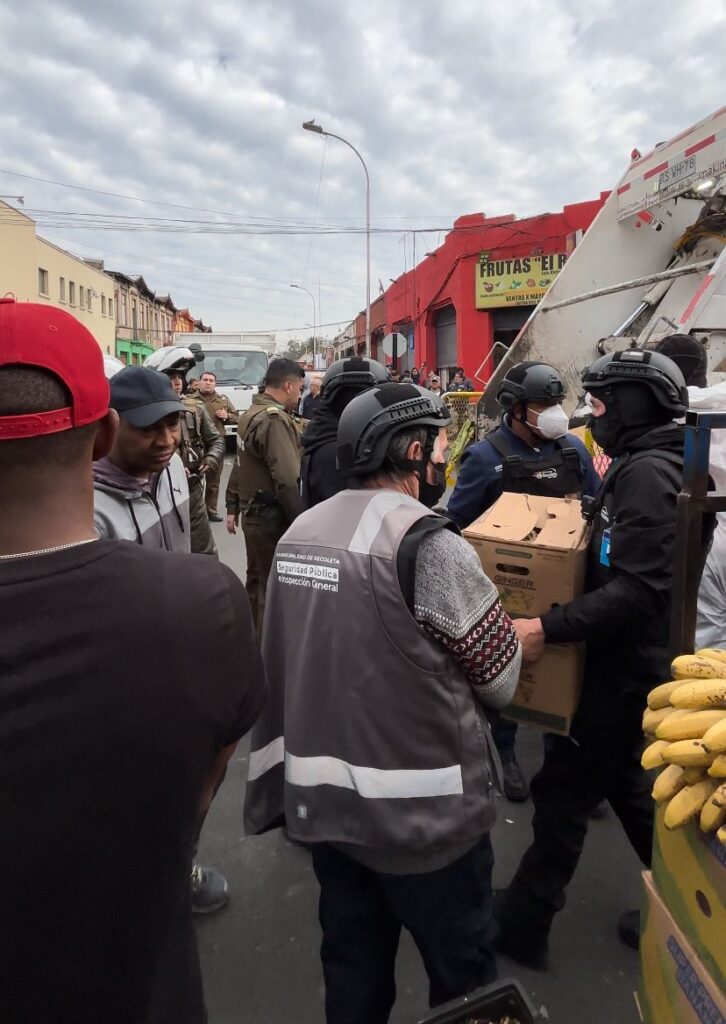 En relación a la requisa, “son entre 4 y 5 toneladas de alimentos de comida preparada, pollos y pescados que se decomisaron en un esfuerzo coordinado entre Carabineros, la Municipalidad de Recoleta y la Seremi de Salud, que son un riesgo sanitario, y que ya no están disponibles para la venta de las personas”, explicó el seremi de Salud, Gonzalo Soto.