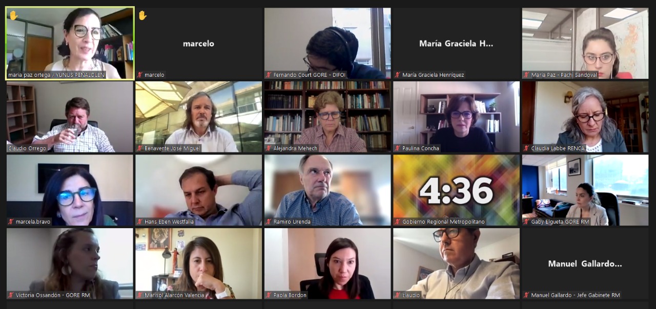 De la cita telemática participaron consejeras y consejeros emprendedores, representantes del mundo municipal, y académicos, tales como María Paz Ortega , Claudia Labbé, Alejandra Mehech, Marisol Alarcón, Maria Paulina Concha, Paola Bordon, Marcela Bravo, Marcelo Guital, Claudio Maggi, Hans Eben, José Miguel Benavente, Marcos Kulka, Ramiro Urenda, y los consejeros regionales Milenka Caballero y Miguel Ángel Garrido.