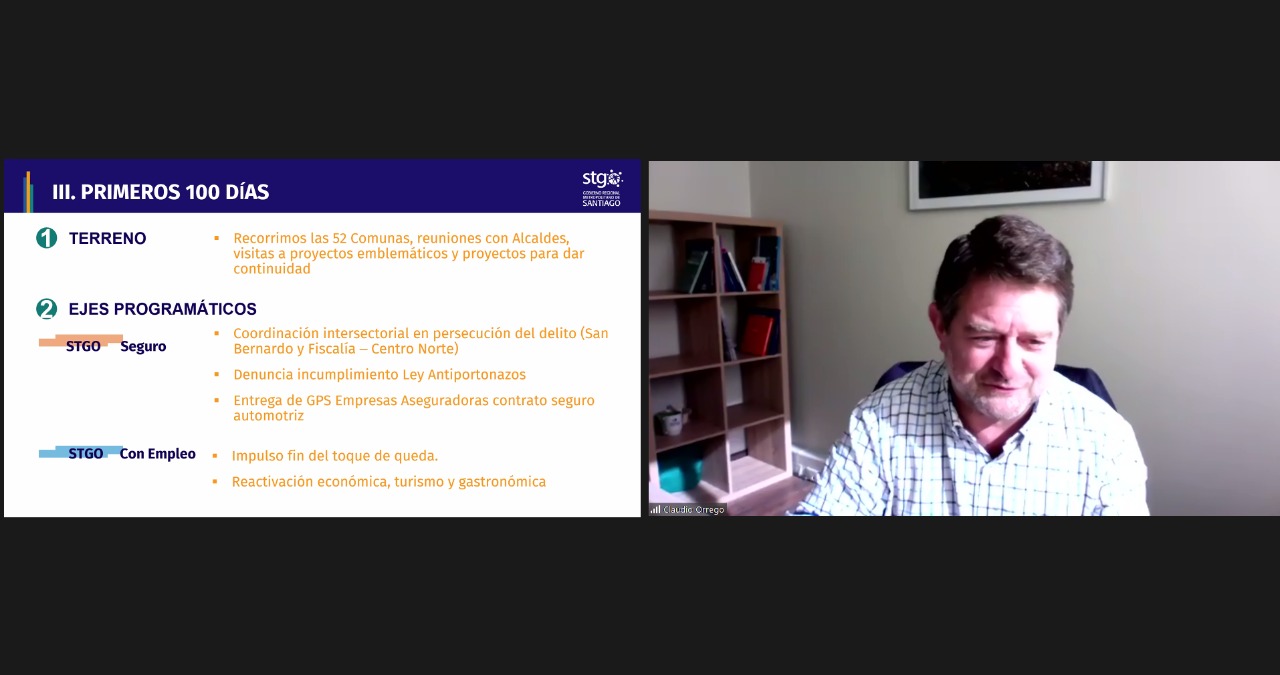 Santiago, 12 de noviembre de 2021.- El Gobernador de la Región Metropolitana, Claudio Orrego, encabezó esta mañana la primera sesión del Consejo Asesor de Modernización de la Gestión y Transformación Digital del Gobierno Regional Metropolitano.