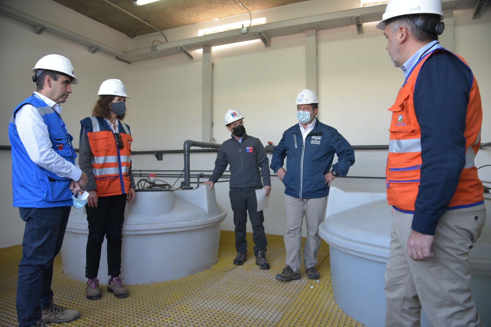 “Con mucha alegría venimos a ver cómo avanzan las obras adicionales que se están haciendo para ir enfrentando la sequía. No olvidemos que estamos enfrentando una situación crítica de sequía que nos obliga a hacer inversiones adicionales e innovaciones que nos permitan asegurar el consumo de agua potable a las personas”, informó el ministro Juan Carlos García luego de recorrer las instalaciones de la nueva planta que aportará a la red un total de 1.500 litros por segundo.