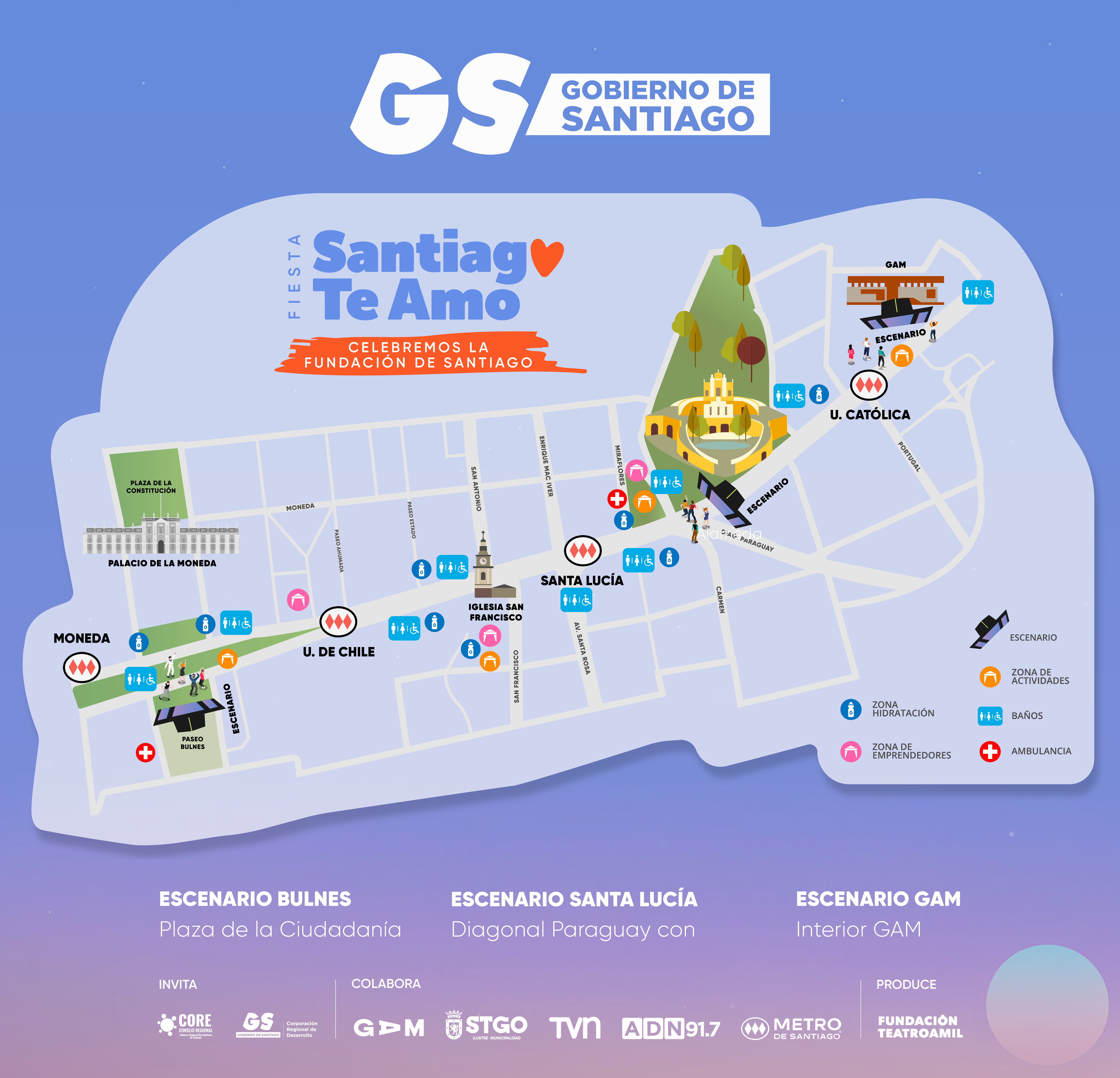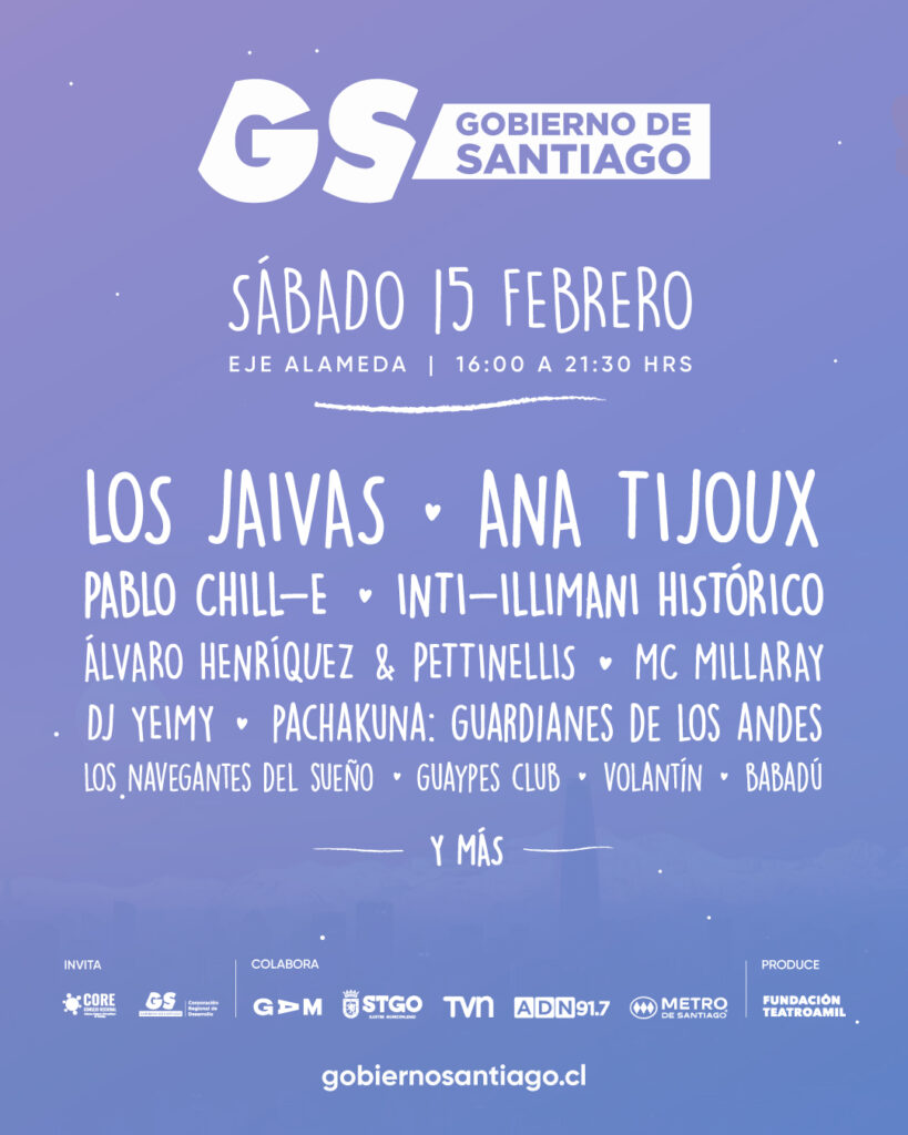 La fiesta contará con tres grandes escenarios: Santa Lucía, Bulnes y GAM, espacios donde podrán disfrutar de diferentes músicos nacionales para todas las edades.